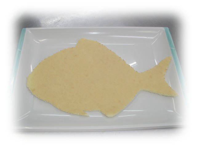 切り抜いたスポンジを1枚盛り皿にのせます。